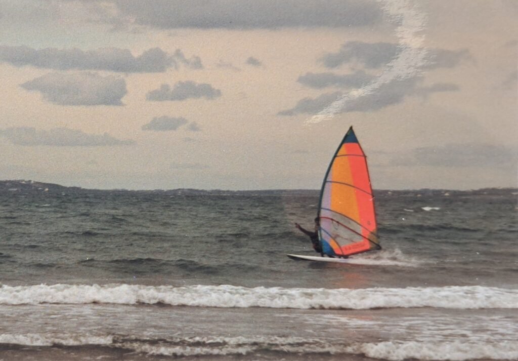 Septembre 98, direction l’Irlande pour ma dernière année d’études dans le cadre d’un échange ERASMUS. C’est l’année de sessions épiques en mer d’Irlande, mais aussi sur la côté ouest, avec le Windsurfing Club de DCU (Dublin City University). Quand, en février 99, j’initie une charmante Alsacienne à ce sport, à Malahide Estuary, je ne me doute pas encore que nous serons encore ensemble, 25 ans plus tard… pourtant, sa motivation pour faire de la planche avec moi en plein hiver irlandais, aurait dû me mettre la puce à l’oreille. En avril de la même année, je passe mon 1er jibe, sur une Bic Vivace 270.