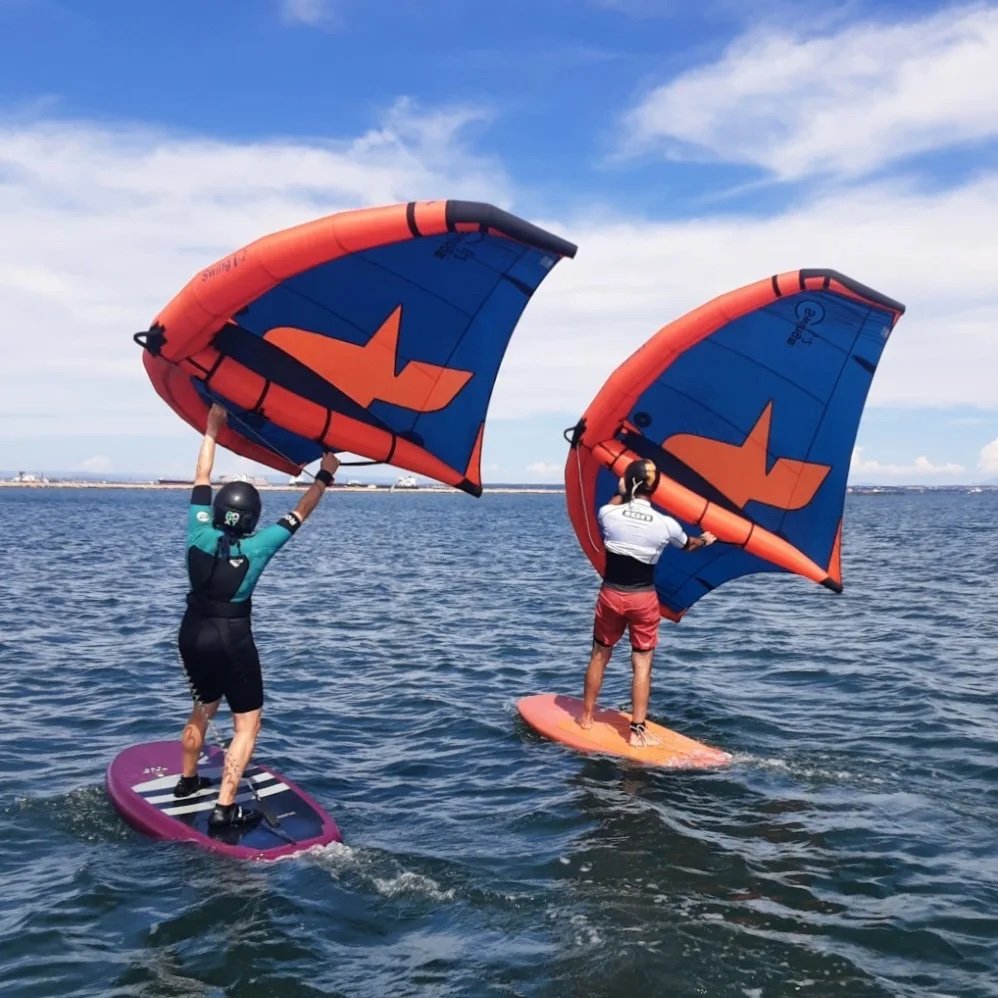 Diplômé en janvier 2025, je m’inspire de ce projet, qui, associé à mon idée de départ, me donne envie d’orienter la création de mon école vers ce sport enthousiasmant, qui mélange anciens planchistes et kitesurfers, mais aussi de nouveaux venus dans l’univers des sports de glisse, qui débutent directement en wing. Toujours windsurfer dans l’âme, j’ajoute la possibilité de prendre des cours débutants en planche à voile, mais aussi celle de louer du matériel plus performant, pour les initiés. Enfin, pour les périodes de pétole, l’école propose des sessions de foil tracté, au départ du port de Pérols.